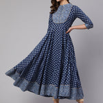 Cotton Printed Mandarin Neck 3/4 Sleeve Flared Kurta