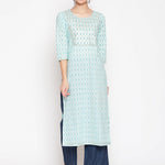 Cotton Printed Round Neck 3/4 Sleeve Straight Calf Length Ethnic Kurta