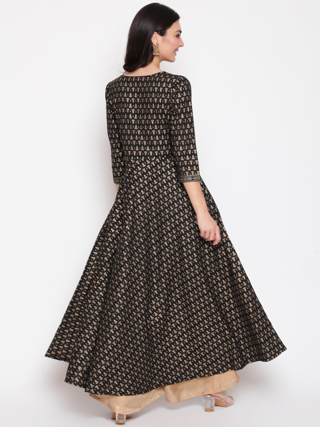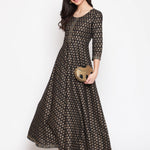Cotton Printed Round Neck 3/4 Sleeve Flared Ankle Length Ethnic Kurta