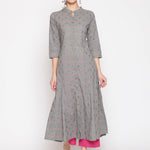 Cotton Printed Mandarin Neck 3/4 Sleeve A-Line Ankle Length Ethnic Kurta