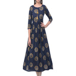 Cotton Printed Round Neck 3/4 Sleeve Flared Ankle Length