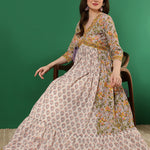 Cotton Printed Ankle Length 3/4 Sleeve V-Neck Alia Cut Tiered Kurta