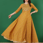 Rayon Printed Ankle Length 3/4 Sleeve Round Neck Anarkali Kurta
