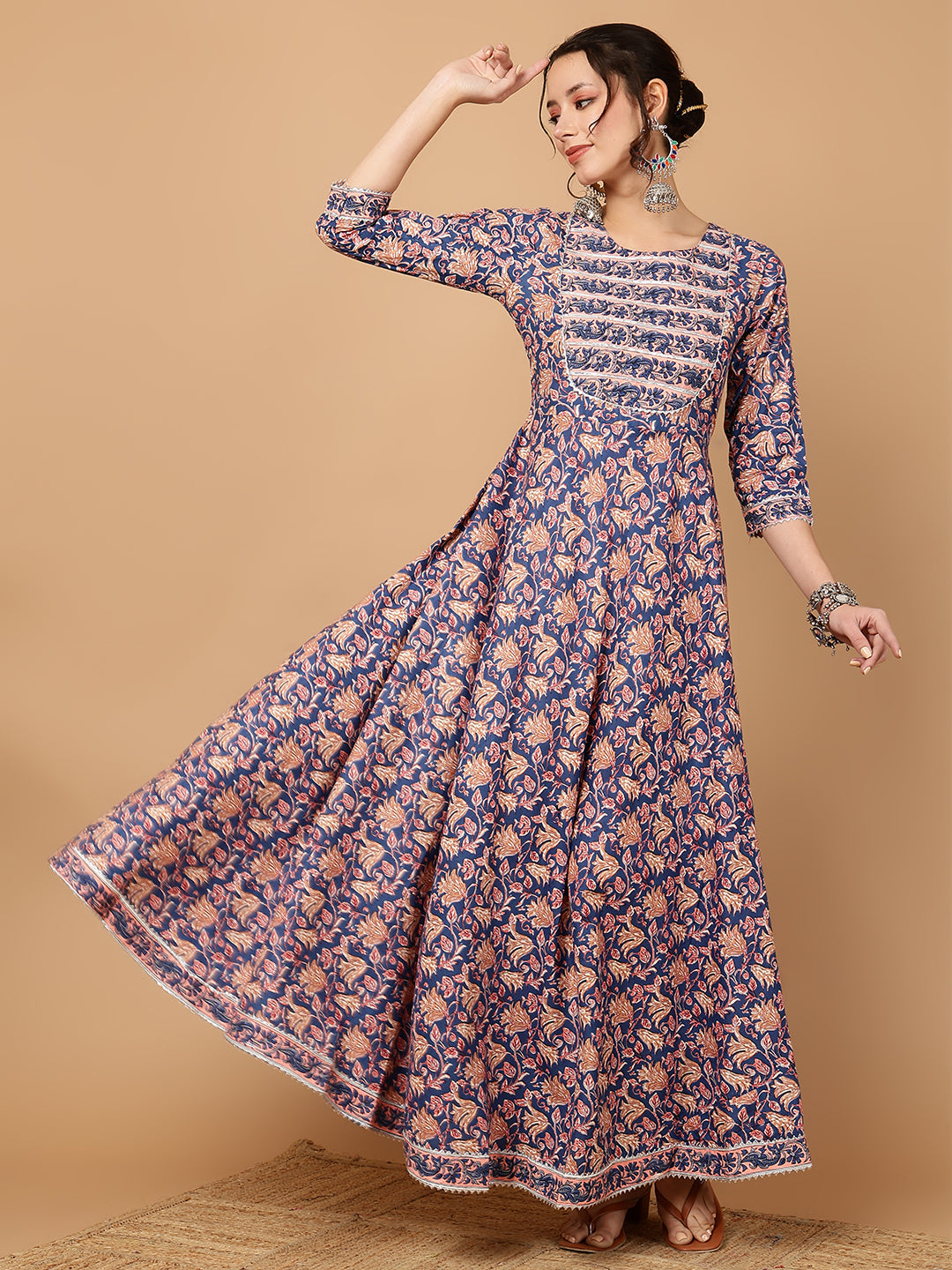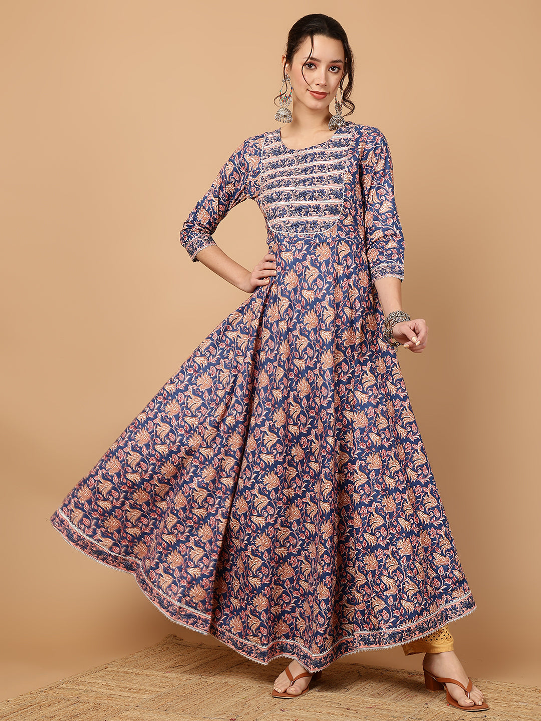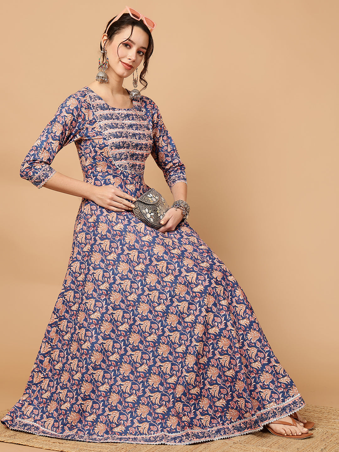 Rayon Printed Ankle Length 3/4 Sleeve Round Neck Anarkali Kurta