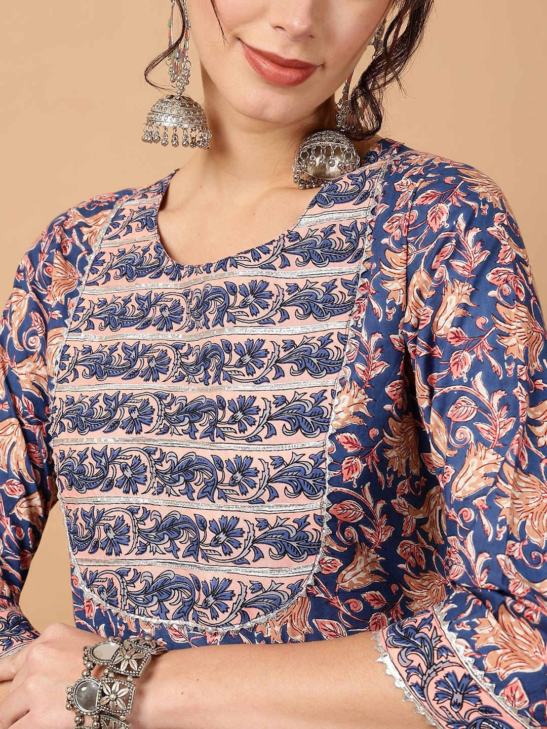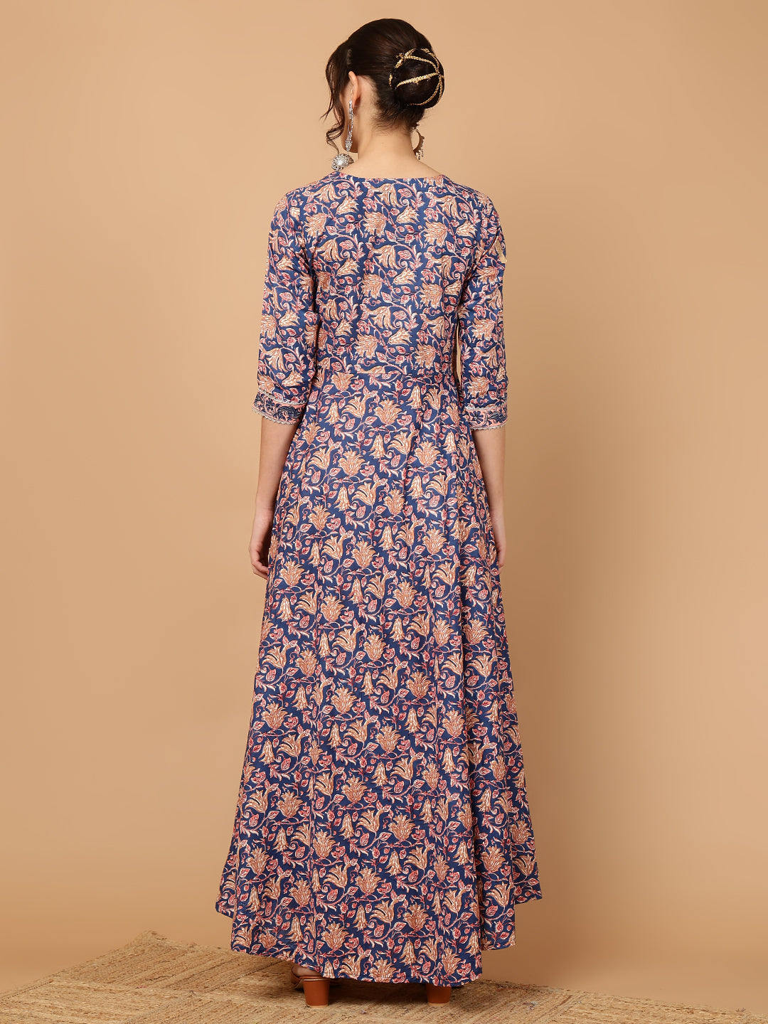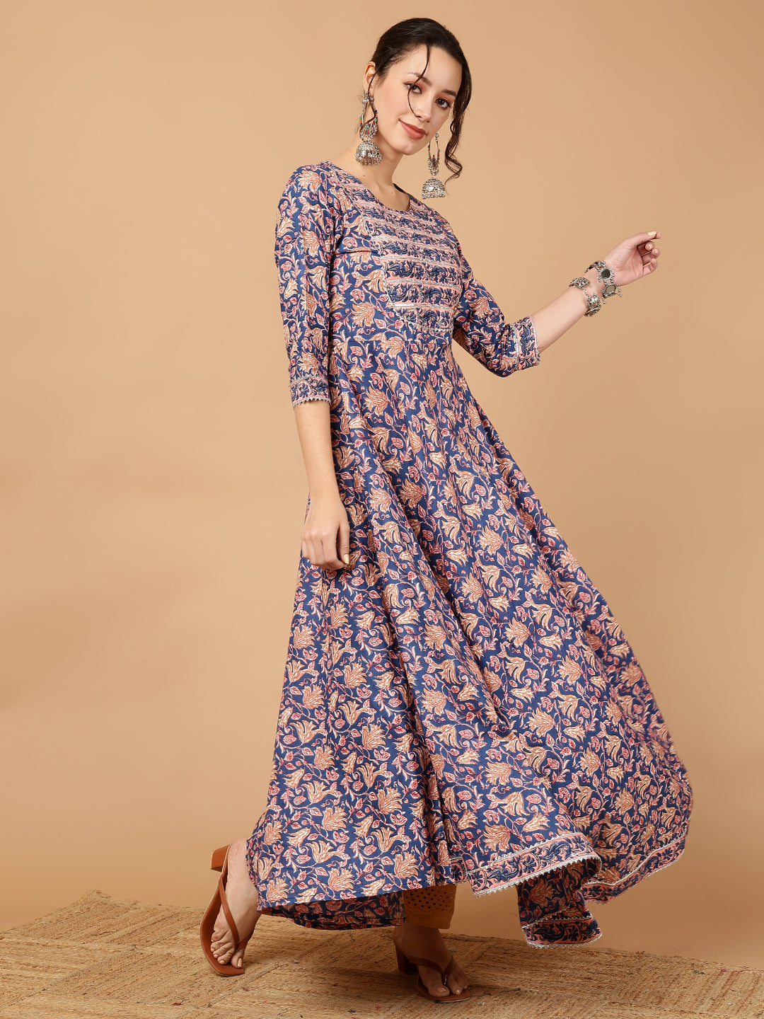 Rayon Printed Ankle Length 3/4 Sleeve Round Neck Anarkali Kurta