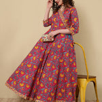 Cotton Printed Ankle Length 3/4 Sleeve V-Neck Angrakha Kurta
