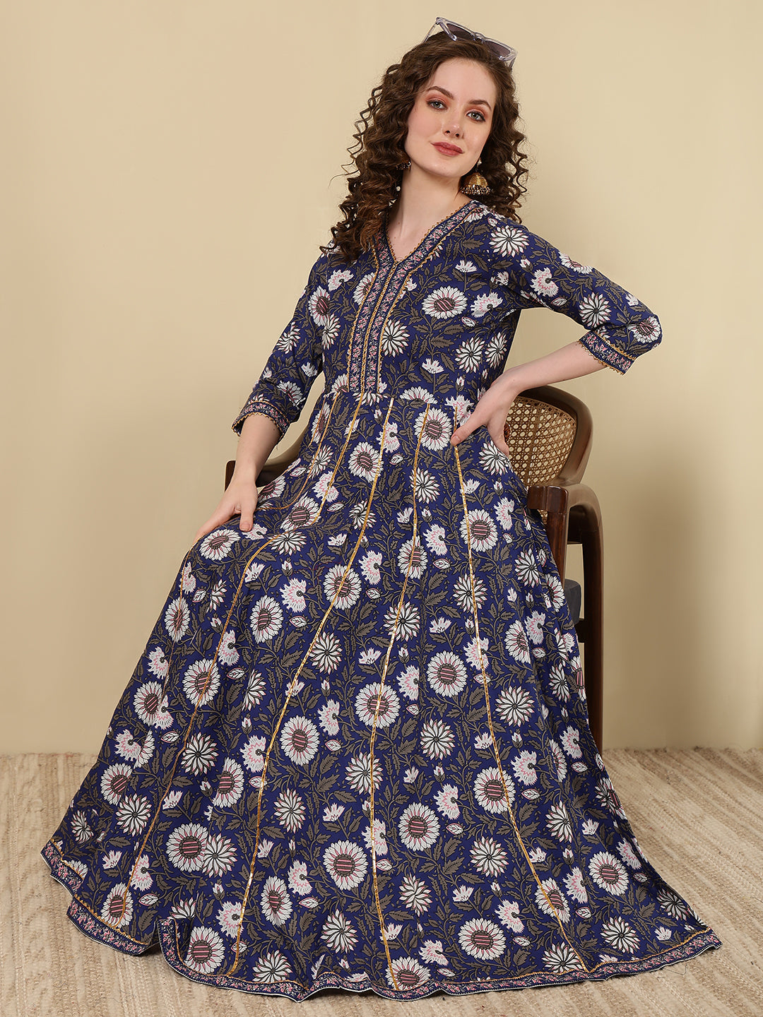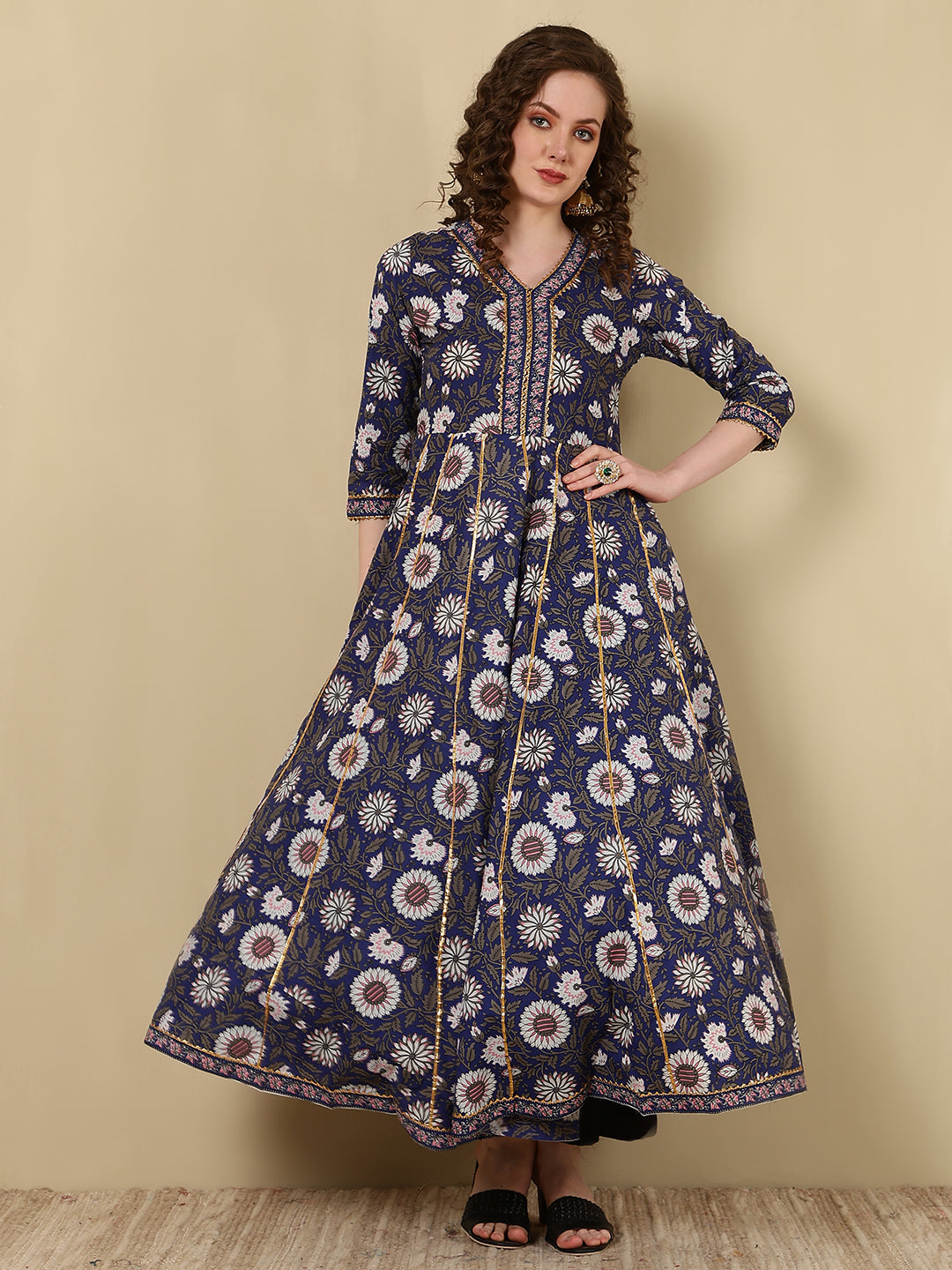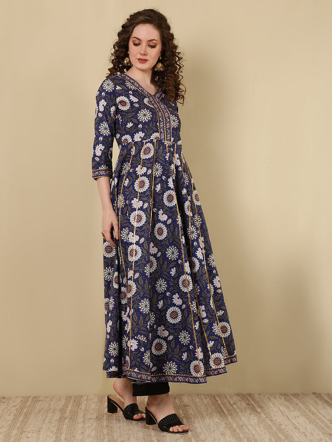 Rayon Printed Ankle Length 3/4 Sleeve V-Neck Anarkali Kurta