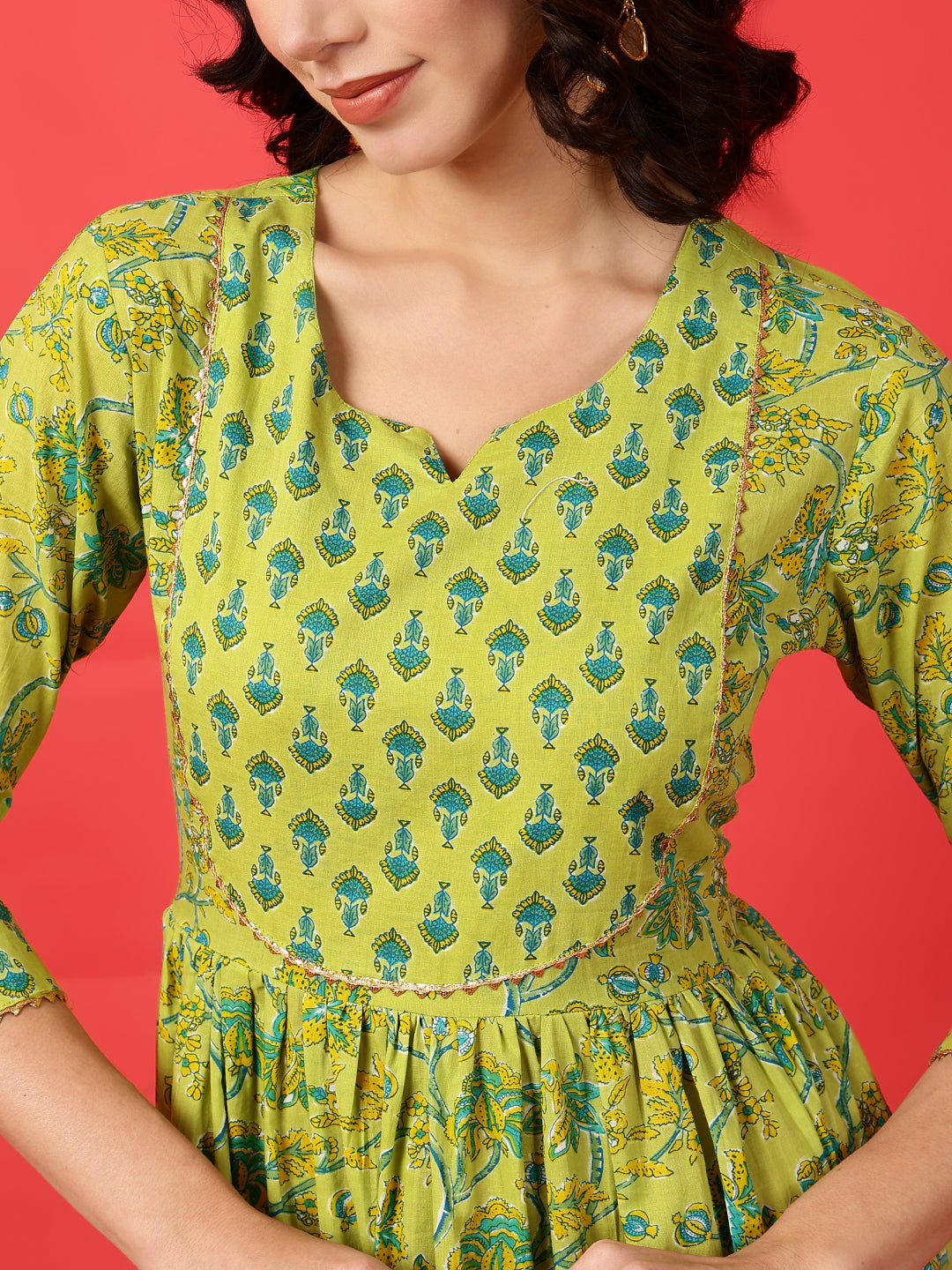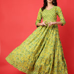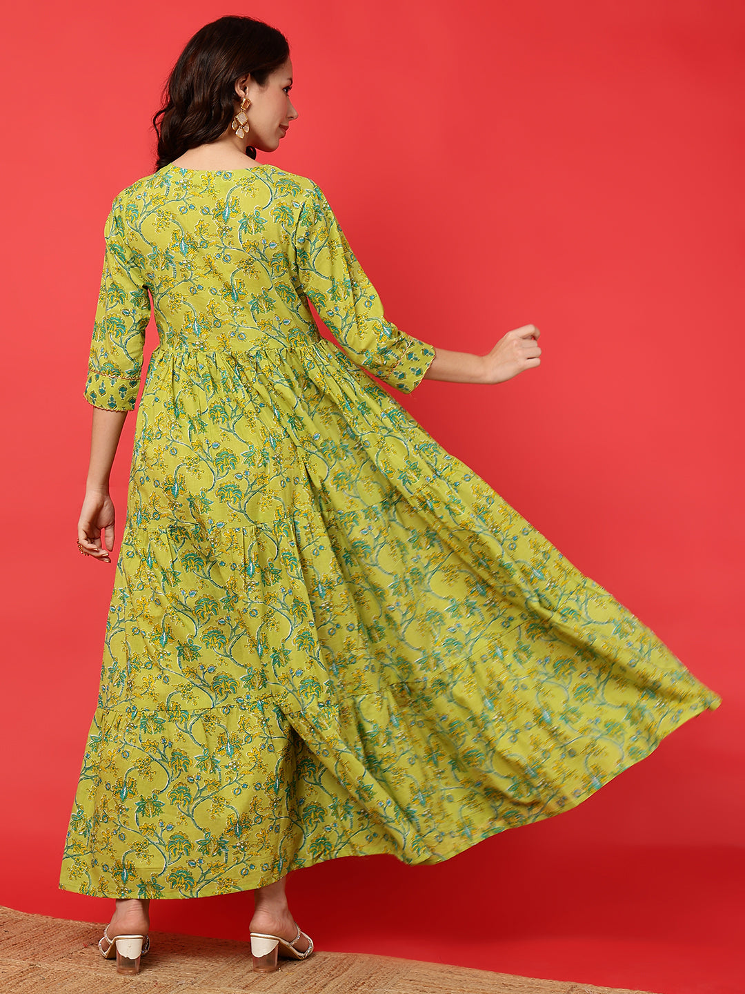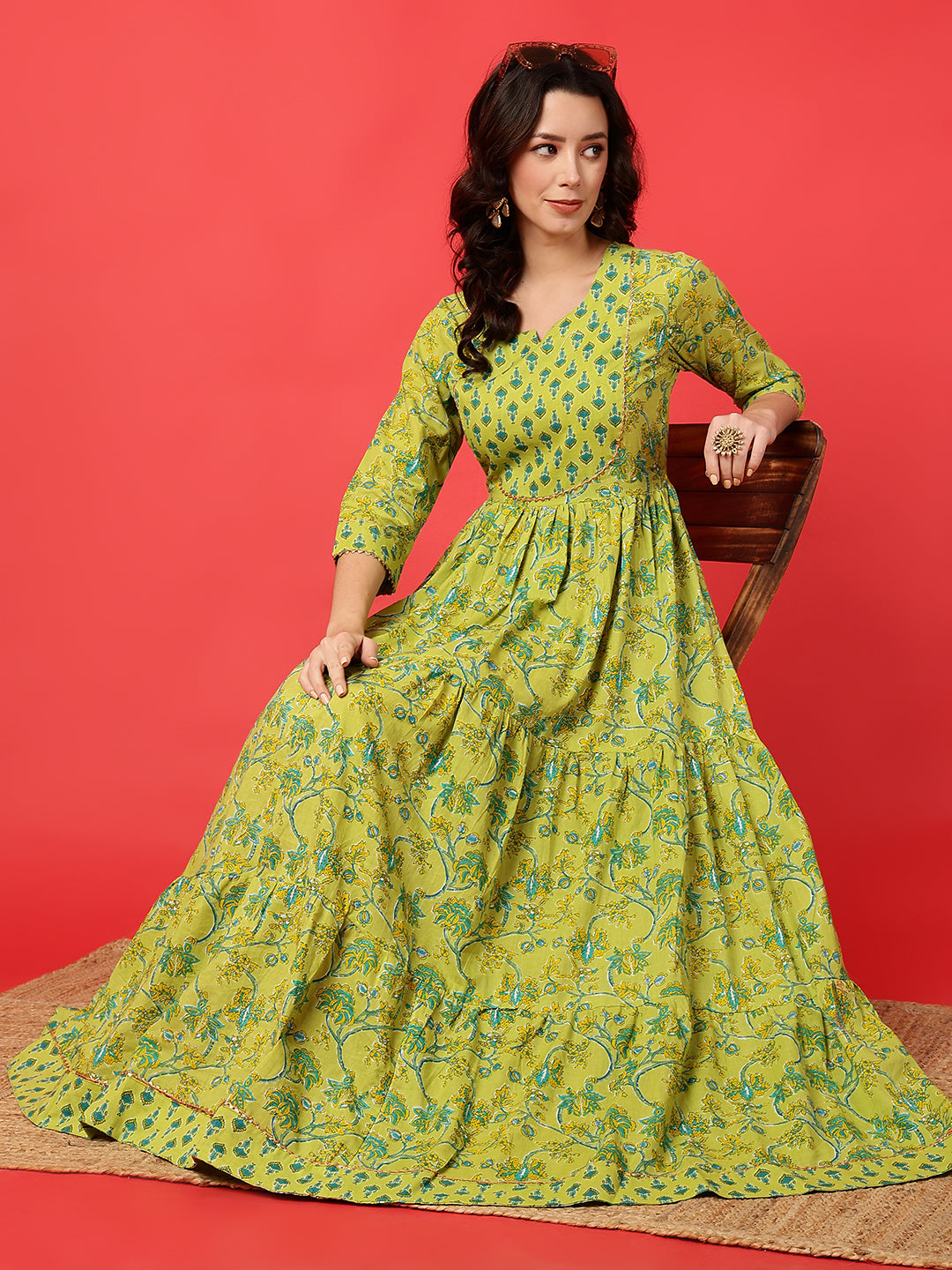 Rayon Printed Ankle Length 3/4 Sleeve Round Neck Tiered Kurta