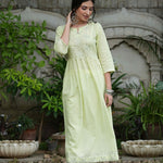 Pista Green Cotton Dobby Festive Embroidered A-Line Long Kurta