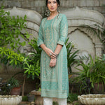 Sage Green Rayon Staple Straight Placement Print Kurta
