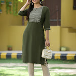 Green Rayon Festive Embroidered Straight Kurta