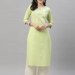 Pista Green Cambric Festive Embroidered Straight Kurta