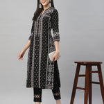 Black Rayon Festive Placement Print Straight Kurta