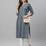 Blue Rayon Festive Placement Print Straight Kurta