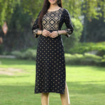 Black Rayon Festive Wear Embroidered Flared Kurta