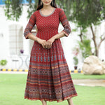 Rust Georgette Festive Printed Flared Anarkali Kurta