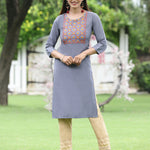 Blue Rayon Festive Wear Embroidered Straight Kurta