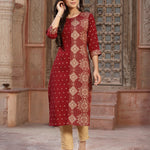 Maroon Rayon Printed Straight Kurta