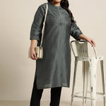 Dark Grey Tussar Silk Festive Wear Solid Straight Kurta