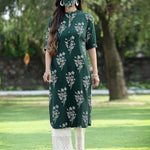 Jade green Rayon Slub Bandhani Straight Kurta