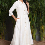 White Cotton Dobby Printed A-Line Kurta