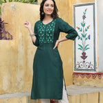 Green Rayon Festive Wear Embroidered Straight Kurta