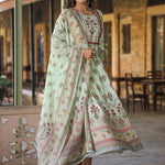 Lime Cotton Cambric Hand Block Look Printed Anarkali Kurta & Dupatta Set