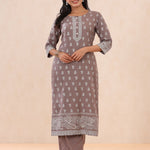 Grey Ethnic Motif Printed Rayon Kurta With Buttons