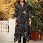 The Dhara Black Floral Printed Nylon Dobby Kurta