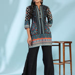 Black Pure Cotton Geometric Printed & Pleated Kurta With Beads & Sequins