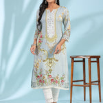 Grey Rayon Floral Printed Round Neck Kurta With Beadwork