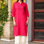 Pink Solid Modal Rayon Straight Kurta With Half Placket At Front