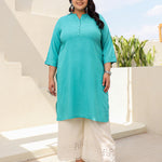 Teal Plus Size Straight Kurta Crafted With Rayon Fabric