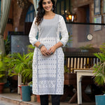 White Ethnic Motif Printed Rayon Kurta With Straight Hemline