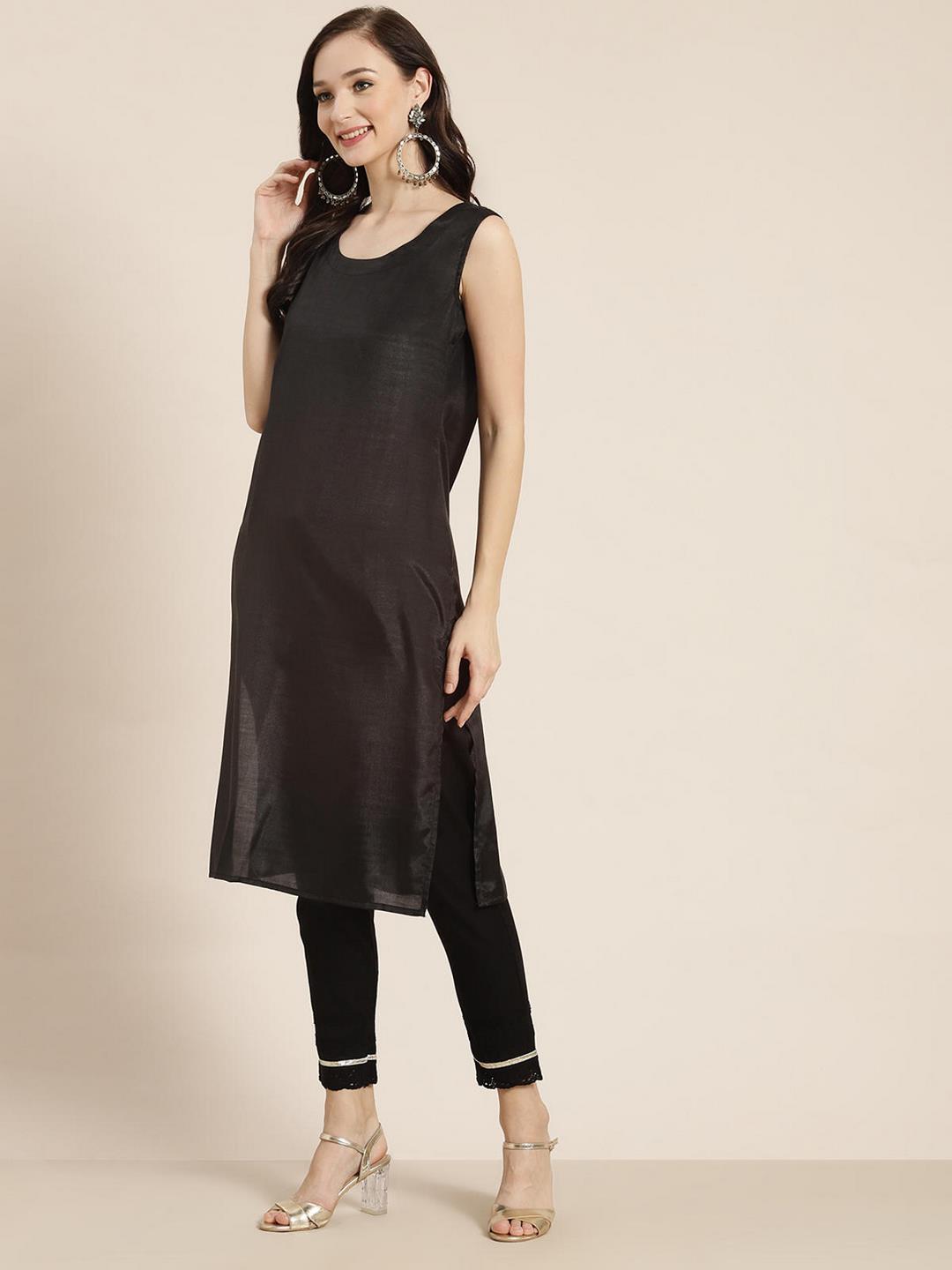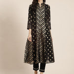Juniper Women`S Black Chanderi Silk Printed Anarkali Kurta
