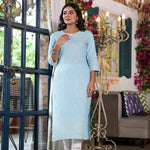 Powder Blue Ethnic Motif Printed Rayon Kurta With Buttons