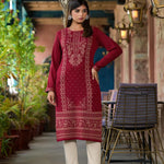 Maroon Ethnic Motif Printed Polycotton Winter Wear Kurta