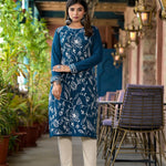 Blue Floral Printed Polycotton Winter Wear Kurta