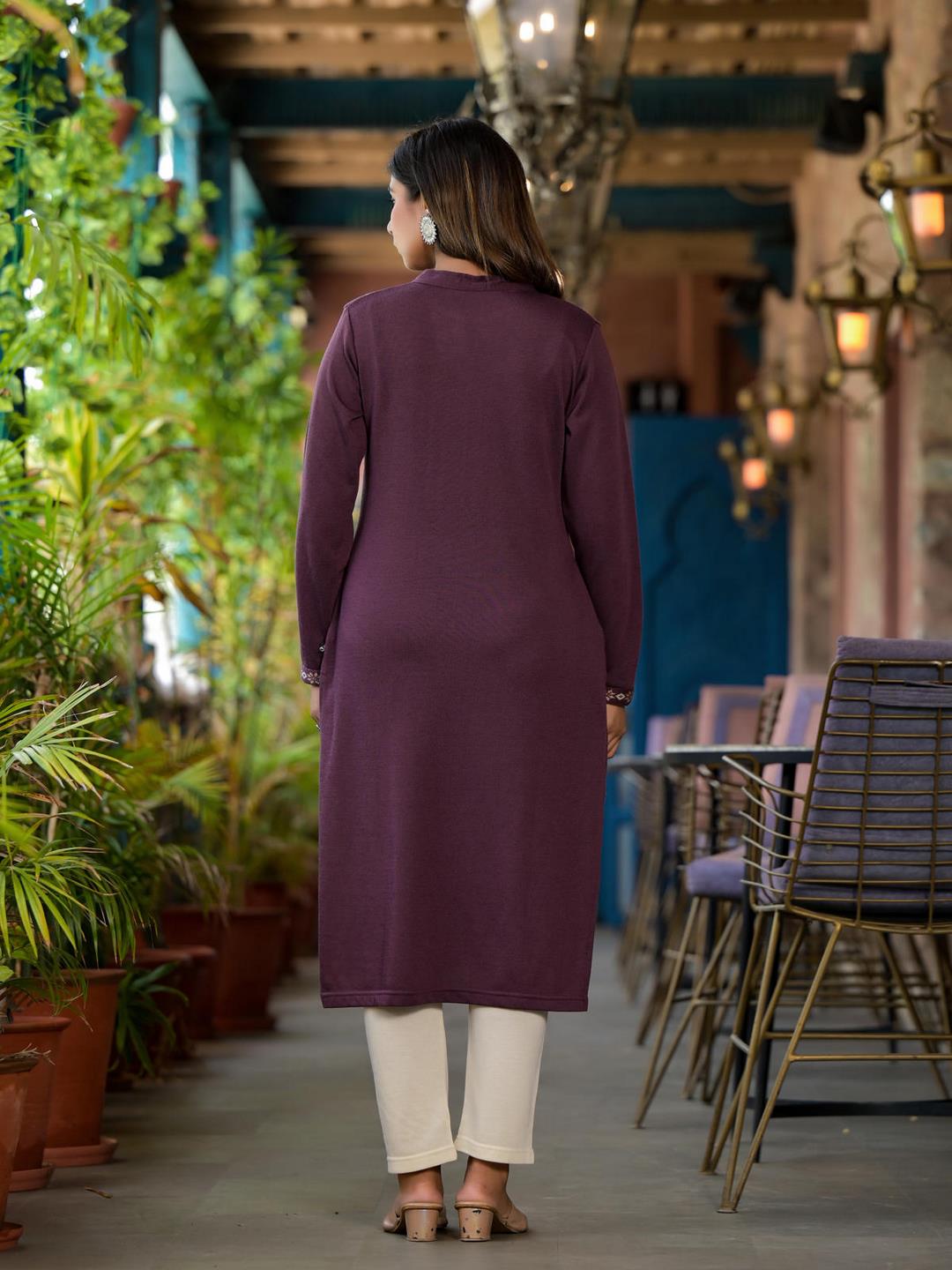 Violet Ethnic Motif Printed Polycotton Winter Wear Kurta