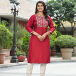 Maroon Solid Rayon Kurti With Mirror Work & Sequins