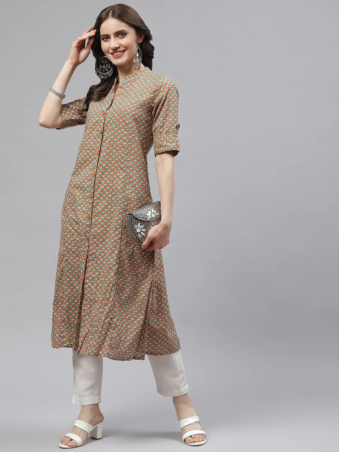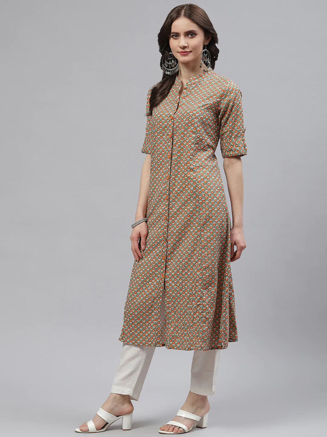 Cotton A-line Kurta (Light Green)