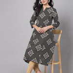 Black Floral Printed Kurta - Rayon Fabric, 3/4 Sleeves, Mandarin Collar And Calf Length