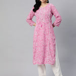 Description - Straight Style Cotton Fabric Pink Color Printed Kurti With Thread & Sequence Work