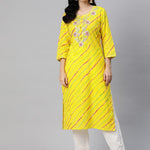 Description - Straight Style Cotton Fabric Yellow Color Printed Kurti With Thread & Zari Work