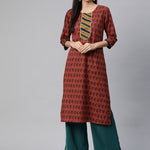 Description - Straight Style Cotton Fabric Maroon Color Printed Kurti With Sequence Work