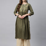 Naira Style Rayon Fabric Olive Green Color Kurti