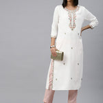 Straight Style Rayon Fabric White Color Kurti