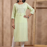 Description - Straight Style Cotton Fabric Green Color Ebroidered Kurti With Sequence, Thread Work