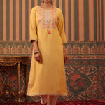 Description - Straight Style Rayon Fabric Yellow Color Kurti With Mirror And Sequin Work