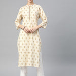 Straight Style Cotton Fabric Beige Color Kurti